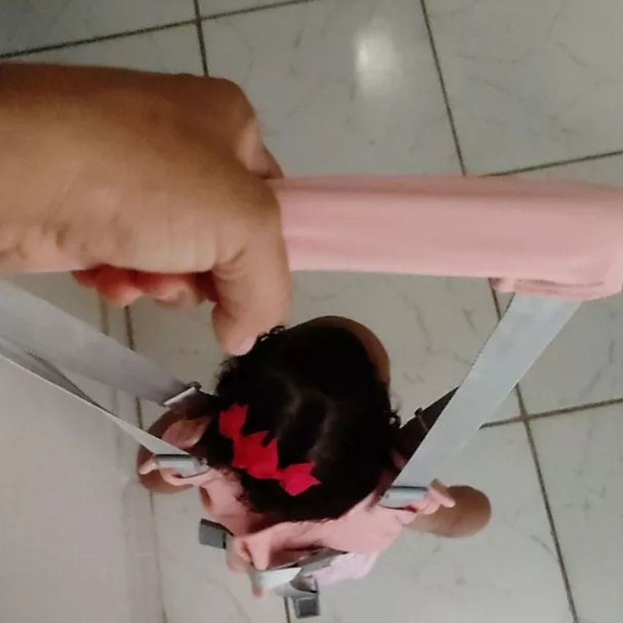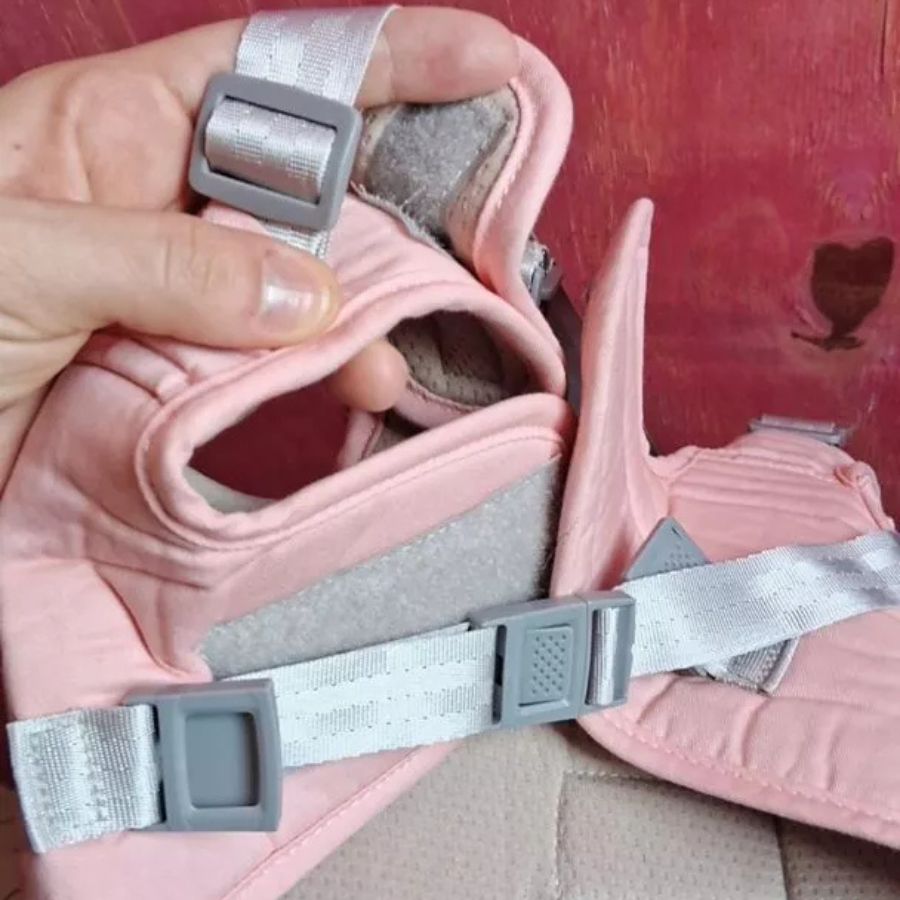 1 - Vista o colete: Coloque no bebê (como se fosse uma roupinha) e trave a fivela dupla de segurança e o velcro.
