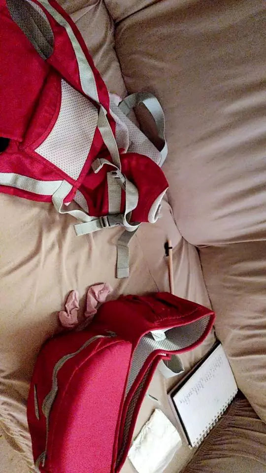 2 - As Alças de Conforto: Coloque o canguru como se fosse vestir uma mochila pela frente e feche a fivela nas costas.